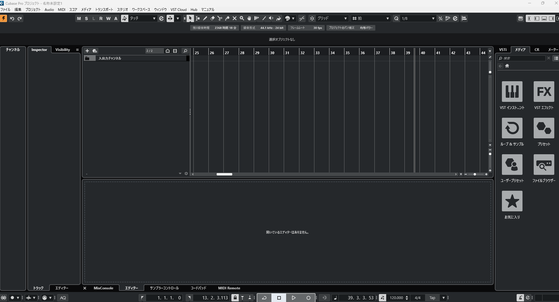 音を出すためには、オーディオインターフェイスとパソコンを繋げる、モニターヘッドフォンをオーディオインターフェイスに繋げる、パソコンの設定のサウンドの確認、、、など音を出すまでの間にもいくつかやるべき工程があるので、実際に画面で作成画面に行って、音が出ないときには参考になれば幸いです。