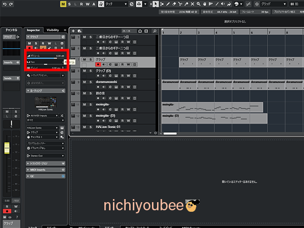 Cubaseで 一つ一つのトラックの音量を調整する方法 を